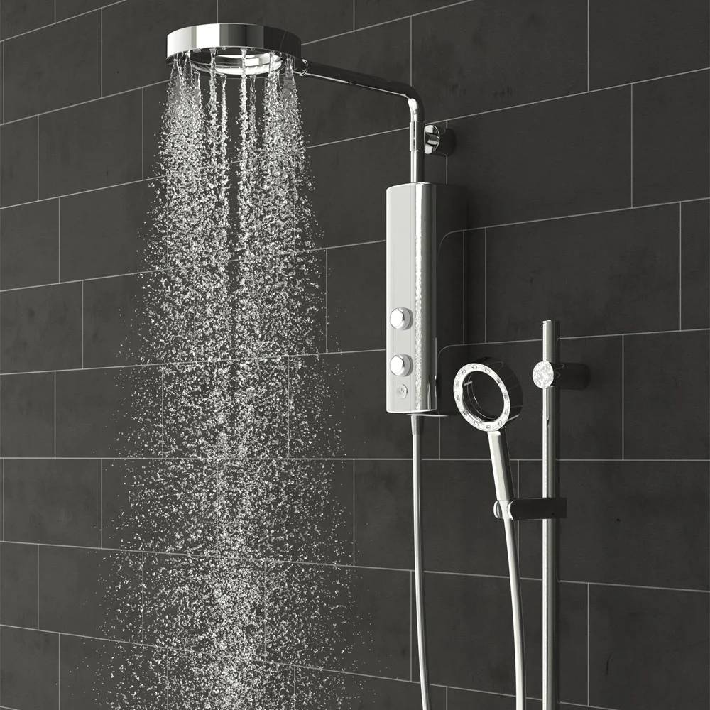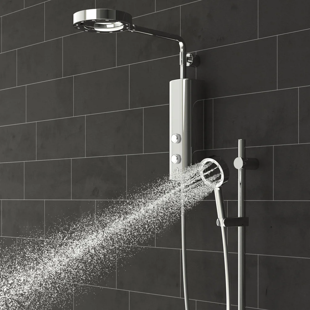 Choose the AQUAS AquaMax Electric Shower for a superior showering experience. The brand’s X Jet technology creates an all-directional spray pattern that provides a more powerful spray and greater body coverage. This design features an overhead shower and a separate handshower, with a simple diverter knob to switch between them. Two power settings allow you to maximise efficiency and energy savings according to the time of year.