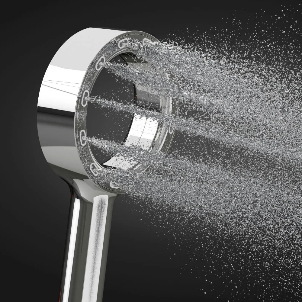 As soon as the water starts running, a large volume of air is pulled though the inner circle of the shower head, pushing the spray of water more quickly towards the user. This increased spray force results in a sensational showering experience.