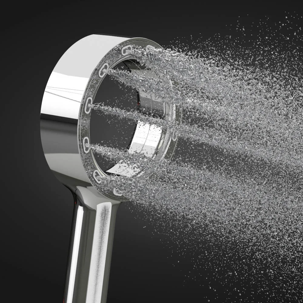 As soon as the water starts running, a large volume of air is pulled though the inner circle of the shower head, pushing the spray of water more quickly towards the user. This increased spray force results in a sensational showering experience.