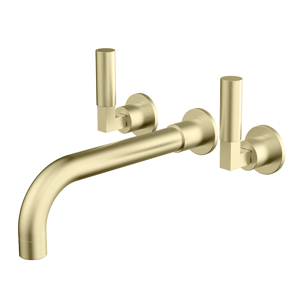 Arezzo Art Deco Lever Wall Mounted Basin Mixer Tap in Brushed Brass (3 Tap Holes)