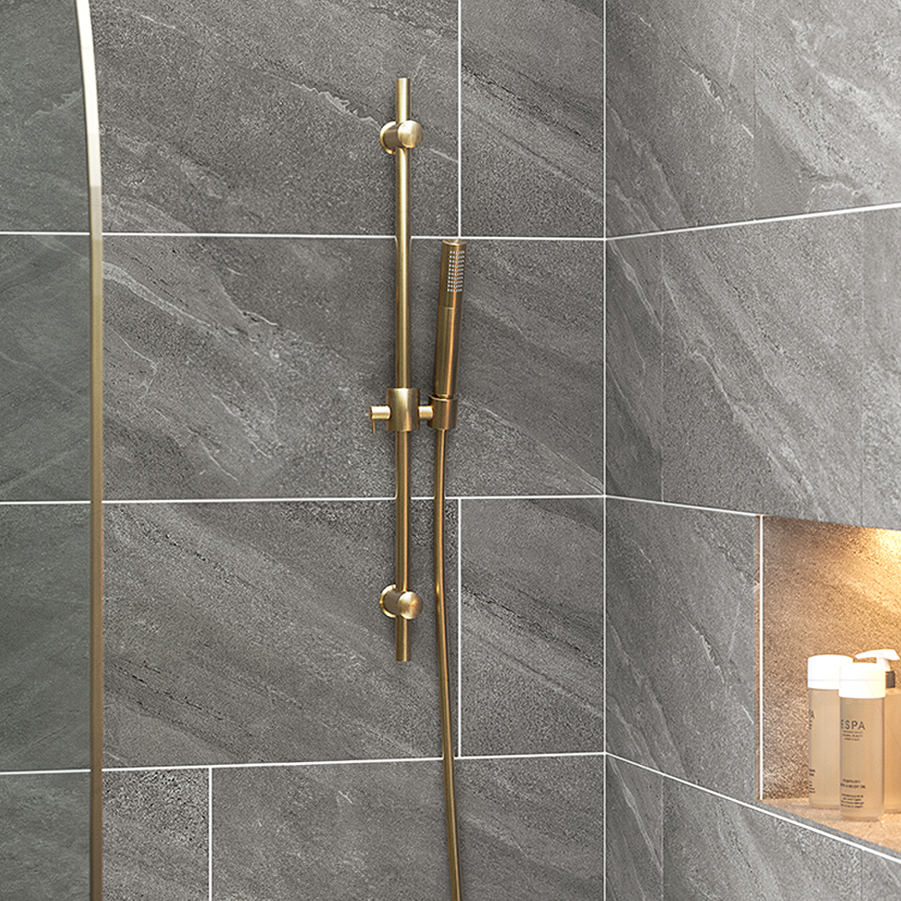 Featuring a stylish, minimalist rounded design, the stunning Arezzo brushed brass slide rail kit is designed and manufactured using the finest methods and materials to ensure a high-quality product. With its contemporary styling, the Arezzo brushed brass pencil-style shower handset will naturally blend in and complement any modern bathroom. The practical slider bracket allows you to move the head up and down with ease. Please note, the outlet elbow is a separate purchase.