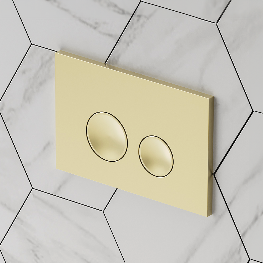 This Arezzo Brushed Brass Round Button Flush Plate is a stylish and functional component commonly found in modern bathroom installations. Its sleek, brushed brass finish provides a touch of elegance, while the two round values offer a simple and intuitive interface for users to operate the concealed cistern. The flush plate’s design is not only aesthetically pleasing but also promotes a minimalist approach to bathroom decor. As a spare part, it is essential for maintaining the seamless look and functionality of a bathroom’s flushing system, ensuring that the design integrity is preserved even after replacements. Compatible with all Arezzo standard and compact WC frames.