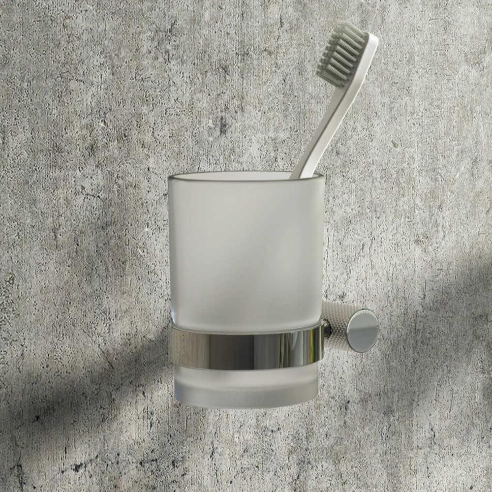 The stylish and practical wall mounted round Arezzo Industrial Style chrome Tumbler Holder is perfect for those wanting to save space around their sink. Crafted to the highest standards, holder features knurled detailing perfect for creating an eye catching industrial look in your bathroom.