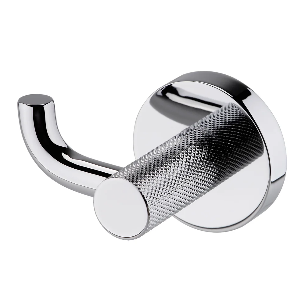 Arezzo Industrial Style Chrome Plated Brass Single Robe Hook with Knurled Detailing