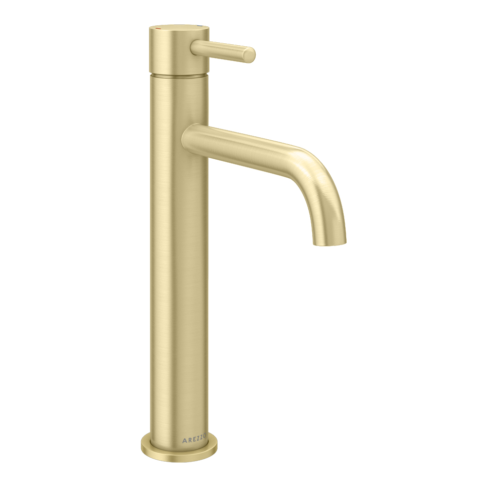 Arezzo Round High Rise Mono Basin Mixer Tap in Brushed Brass