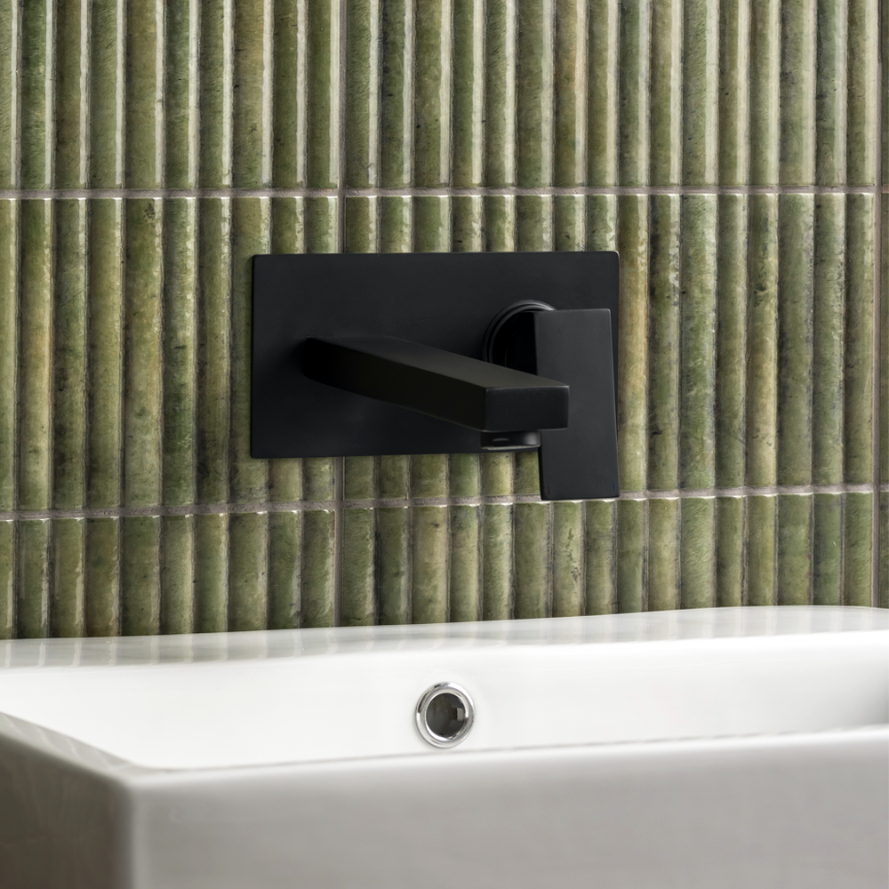 The modern Arezzo square wall mounted basin mixer, manufactured from brass with a stunning matt black finish. The Arezzo matt black range is characterised by it’s stylish rectangular face plate and spout with a matching single lever tap head providing control for flow and temperature. It’s sleek minimalist design makes this tap well suited for any style of bathroom.