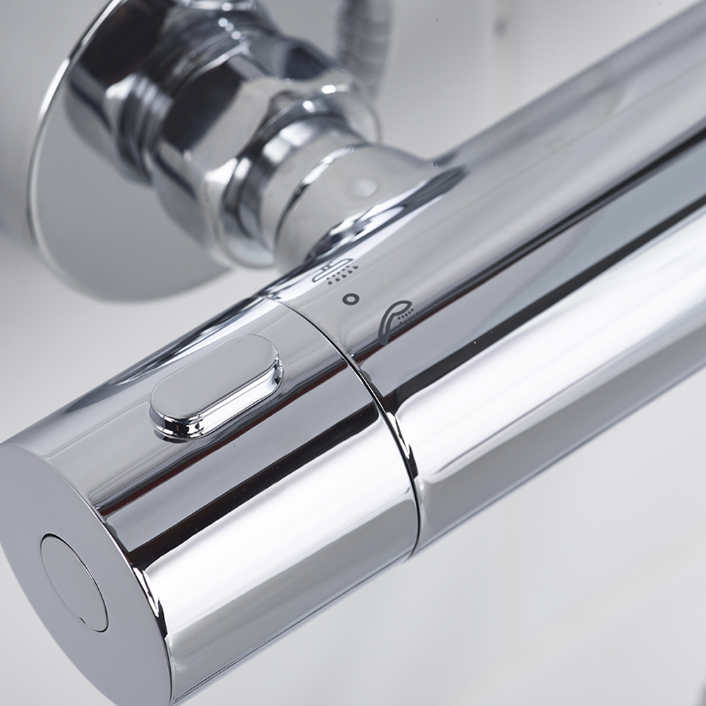 The Bristan Zing2 Thermostatic Bar Shower Valve and Rigid Riser Kit is a versatile and stylish shower system that includes a bar shower valve, hose, telescopic rigid riser rail, and rub-clean anti-limescale drench head with a single function handset. It features an integral two-outlet diverter for easy switching between the handset and drench head, and a thermostatic cartridge with a preset temperature safety stop at 38°C for family-safe showering. The system is designed for easy installation with Bristan’s Wall Mount 10 fast fixing kit and is suitable for various plumbing systems. Its durable chrome finish is scratch-resistant and salt spray tested for added longevity.