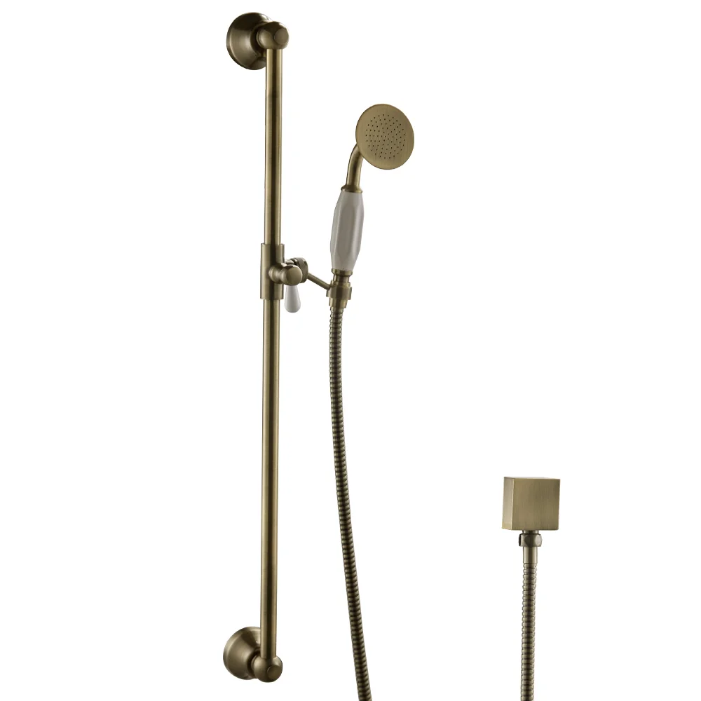 (1) Antique Brass Traditional Shower Slide Rail Kit with Outlet Elbow