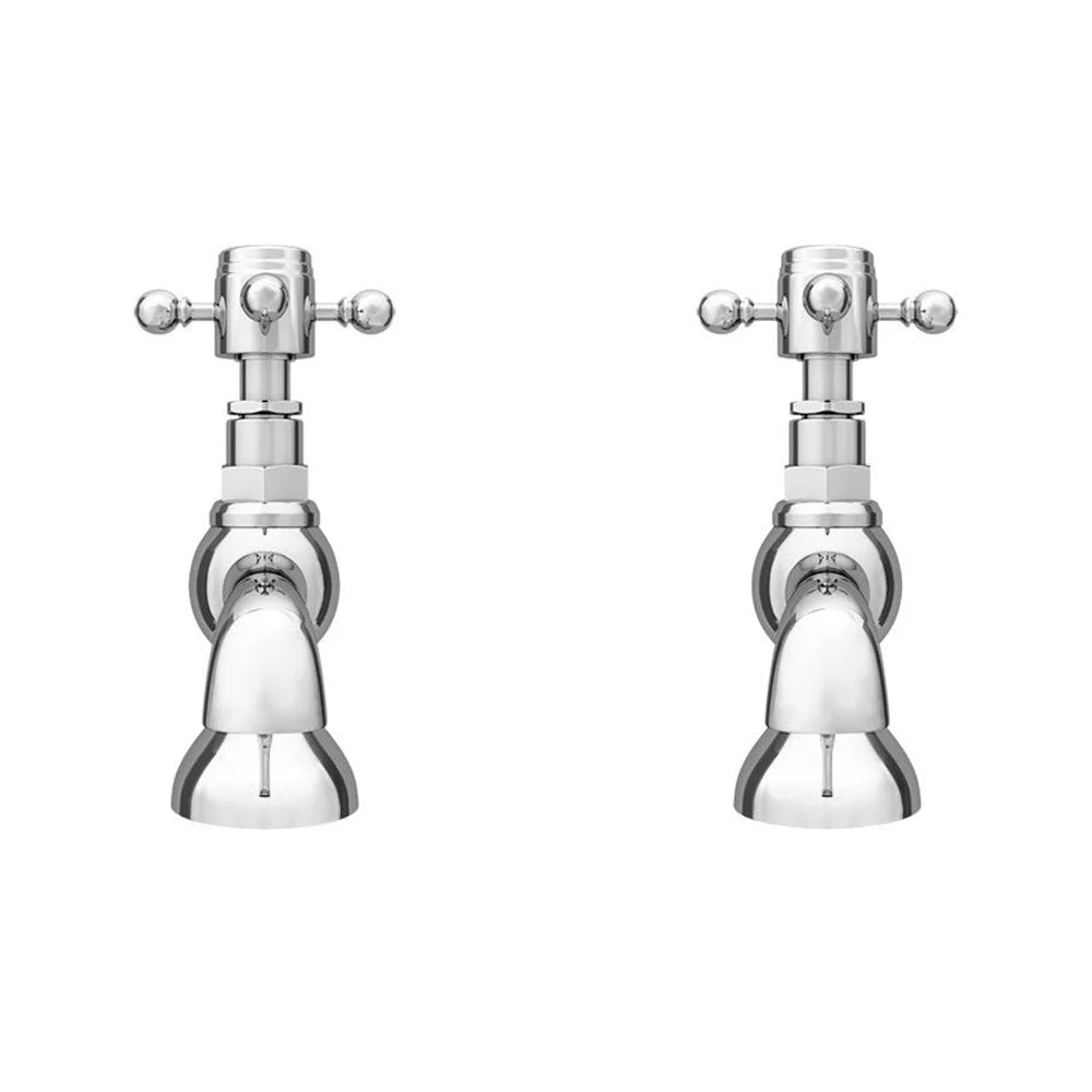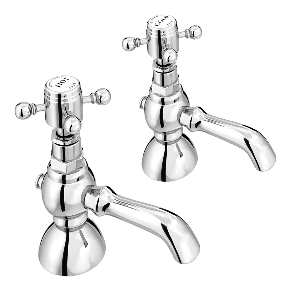 These Chatsworth 1928 Traditional Crosshead Pillar Basin Taps are just the thing to top off your vintage inspired bathroom. The 142mm high chrome basin taps have a decorative shape with a period feel, while their polished finish gives them a luxurious shine. Exquisitely crafted cross taps add to the look and feature white inlays with ‘hot’ and ‘cold’ in classic lettering. Made from hardwearing solid brass, these traditional basin taps will stand the test of time. Pair them with other designs from the Chatsworth collection such as the 1928 Traditional Soap Dish Holder to create a cohesive look.