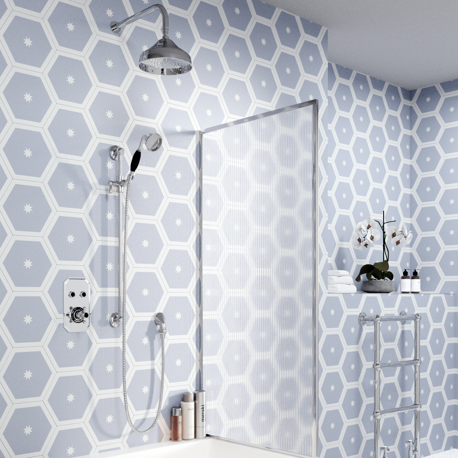 - Functionality: Controls two outlets, thermostatically controlled, operates two shower accessories separately or simultaneously