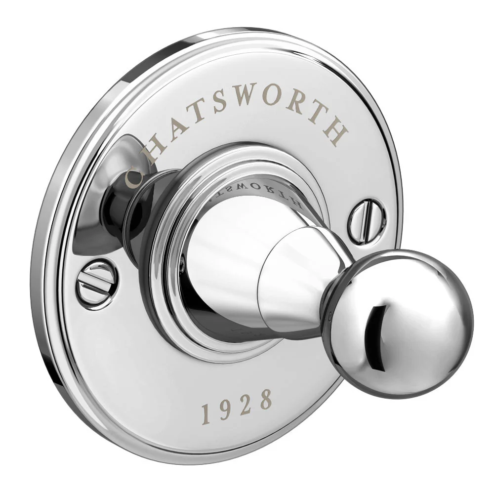 The Chatsworth 1928 Traditional Robe Hook is a stylish addition to any bathroom, offering a vintage-inspired look with its classic shape and banding. Made from high-quality brass with a polished chrome finish, it provides a luxurious spot for your bath towel or dressing gown. This hook is part of the Chatsworth 1928 collection, which includes other fixtures like taps and shower systems for a cohesive bathroom design1.