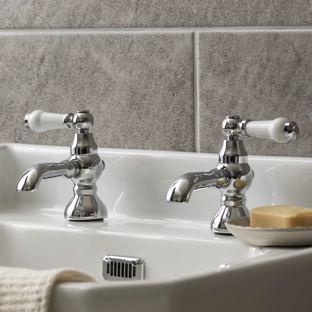 Chatsworth 1928 Traditional White Lever Pillar Basin Taps