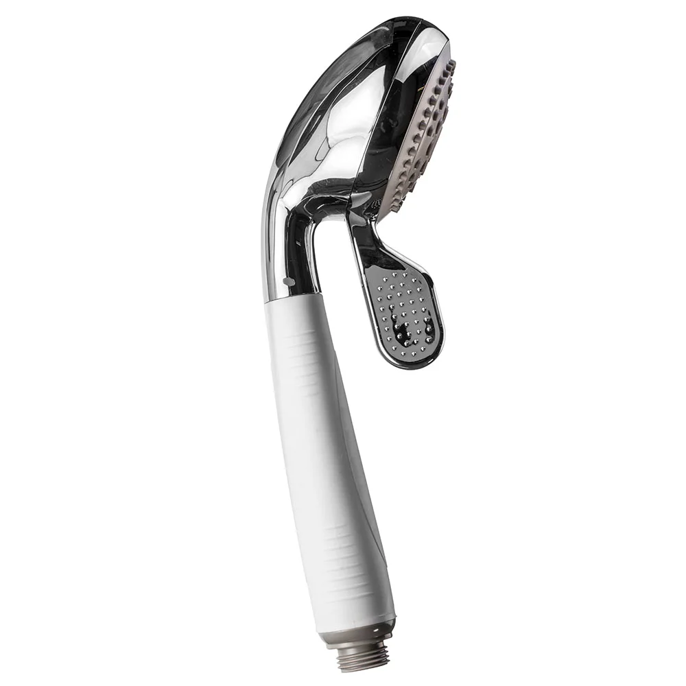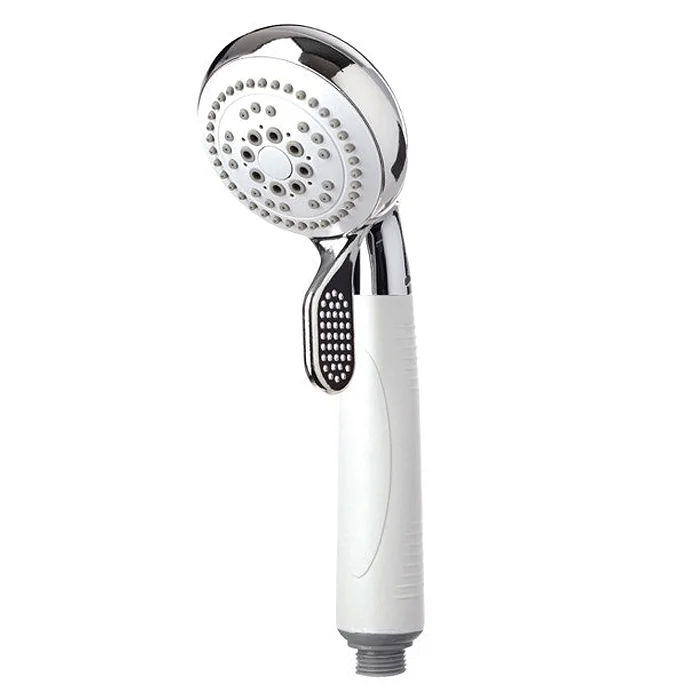 Boasting a sleek white and chrome finish, this four function shower head radiates style. To enhance usability, a tactile rubber handle and large lever makes gripping and switching functions easier.