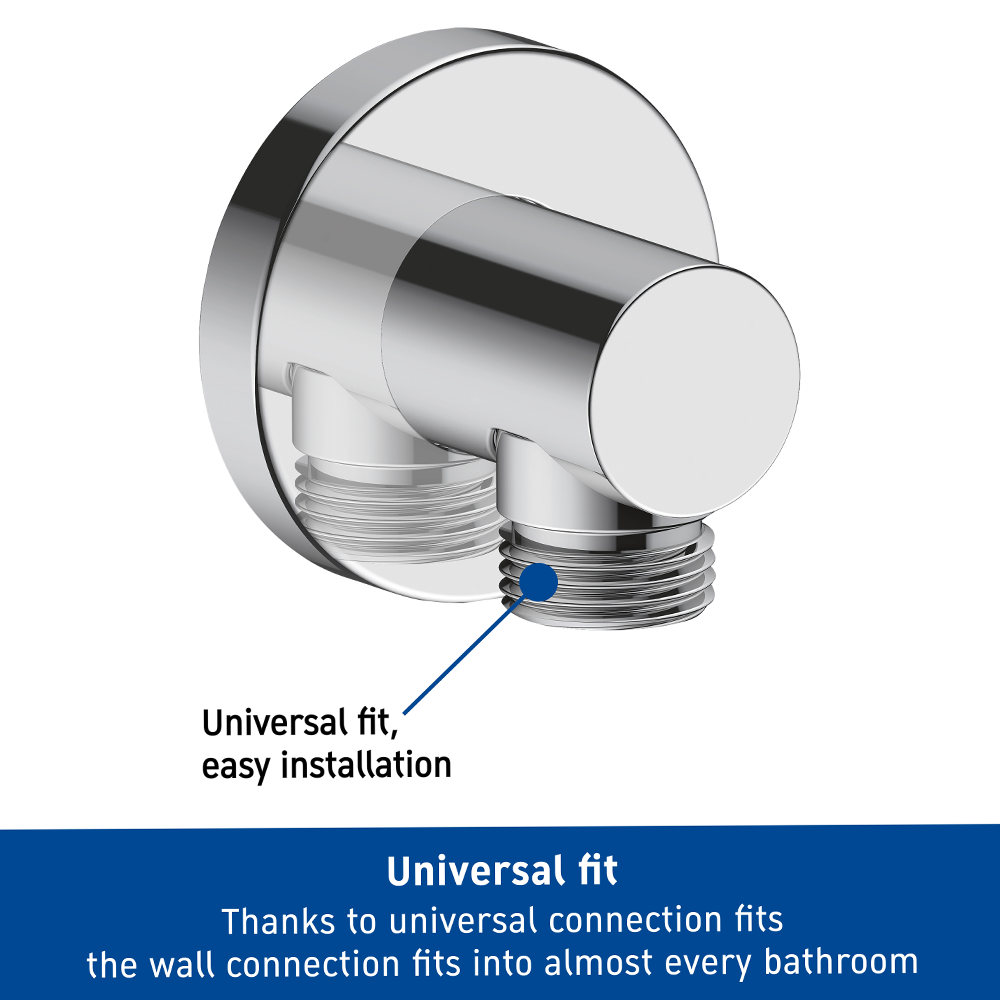 This Universal Round Shower Wall Outlet is sleek, stylish, and the perfect complement for any bathroom. Combine this stylish wall outlet with a shower kit from the Duravit bathroom Range. Finished in chrome.