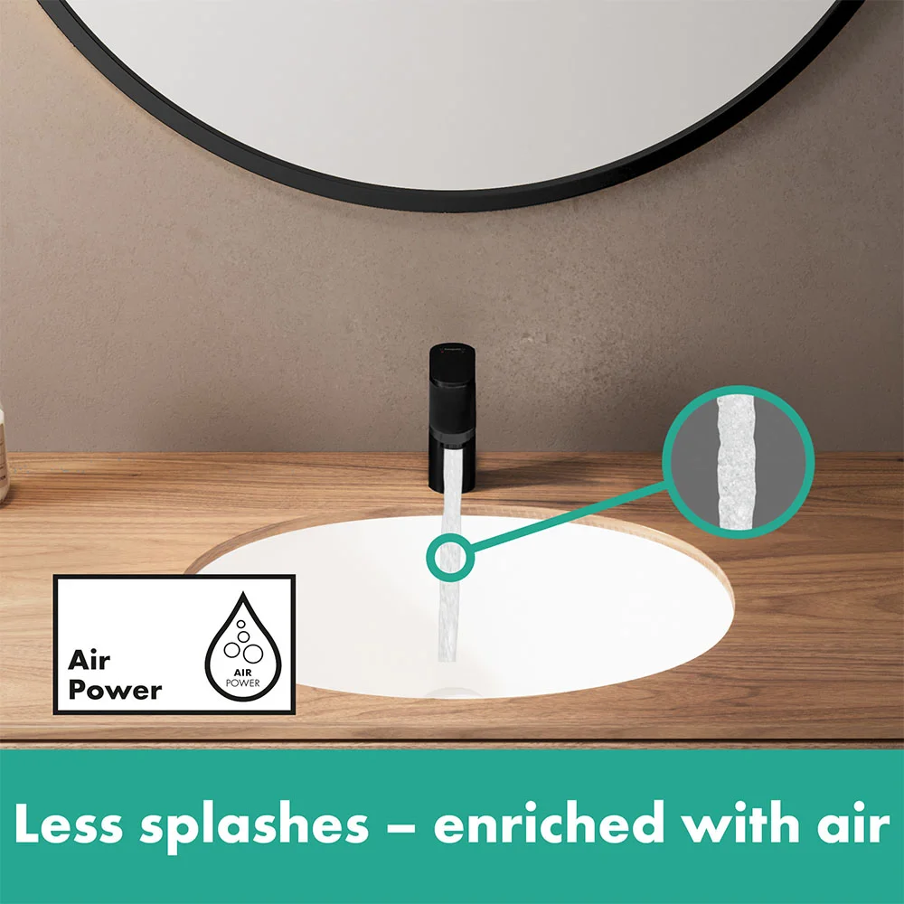 The harmonious design of Vernis Blend, with its gentle curves, has a modern and elegant look. This single lever basin mixer offers an economical way of adding designer elegance to your bathroom. AirPower technology adds generous amounts of air to the water, creating a soft, splash-free spray while EcoSmart technology reduces the flow rate to save water and energy.