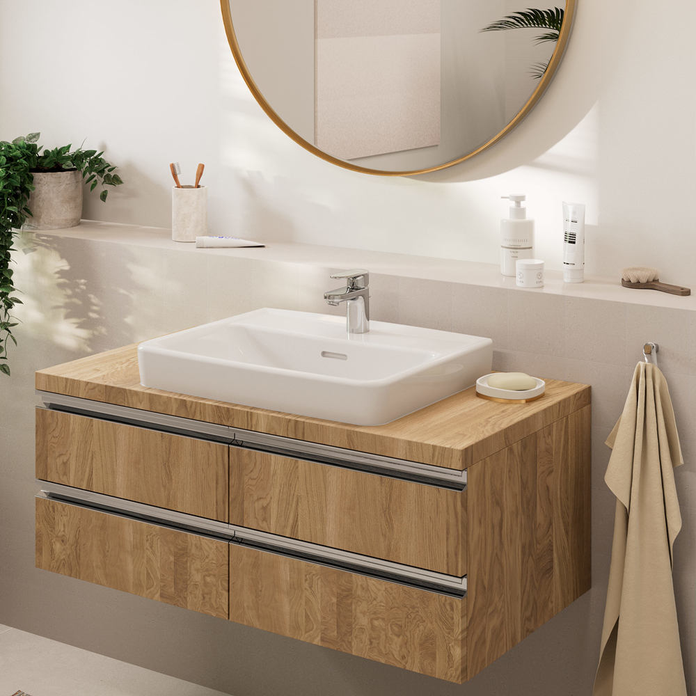 The harmonious design of Vernis Blend, with its gentle curves, has a modern and elegant look. This single lever basin mixer with isolated water conduction offers an economical way of adding designer elegance to your bathroom. AirPower technology adds generous amounts of air to the water, creating a soft, splash-free spray while EcoSmart technology reduces the flow rate to save water and energy.