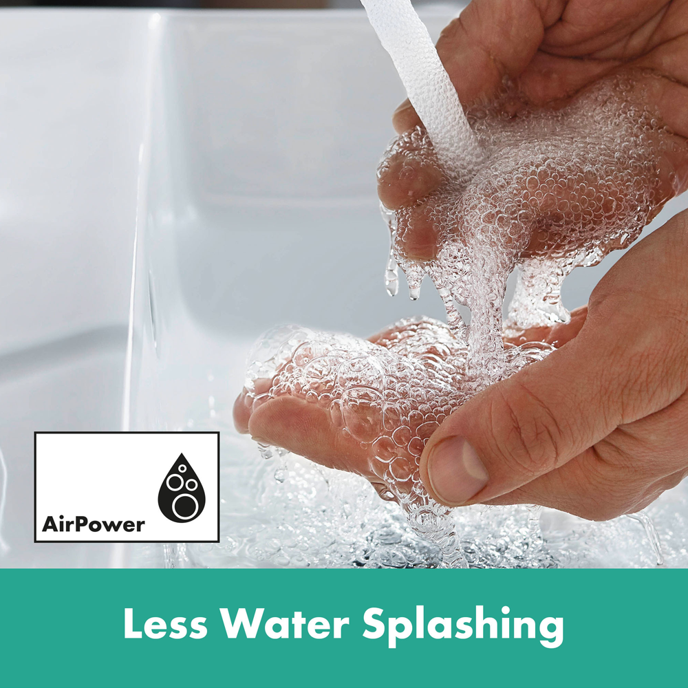 The harmonious design of Vernis Blend, with its gentle curves, has a modern and elegant look. This single lever basin mixer offers an economical way of adding designer elegance to your bathroom. AirPower technology adds generous amounts of air to the water, creating a soft, splash-free spray while EcoSmart technology reduces the flow rate to save water and energy.