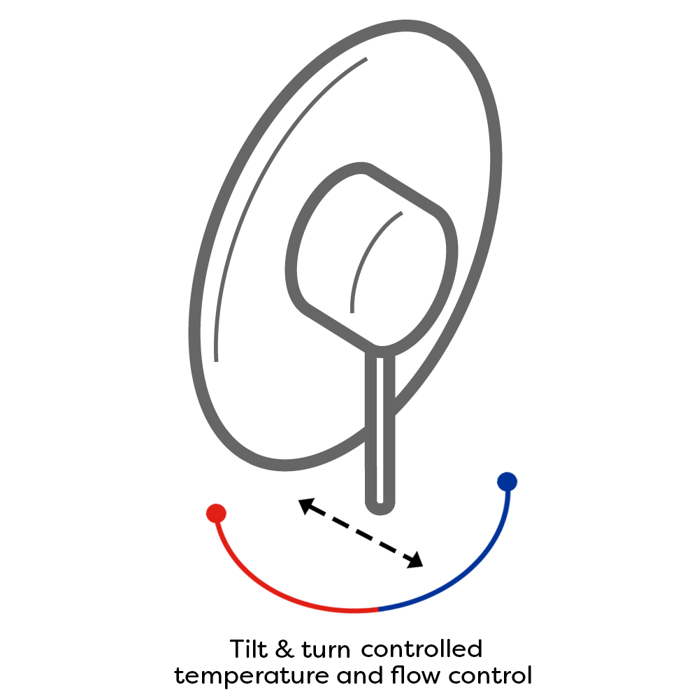 The elegant Keswick concealed manual mixer shower valve features a classically styled round back plate and easy to operate controls – one control for both flow and temperature, simply lift lever to introduce flow, adjust left or right to set temperature.