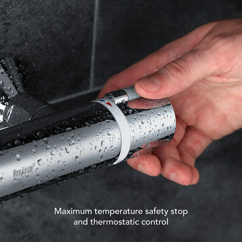 - Smart safety features, including maximum temperature stop, thermostatic control and Mira Cool Shield™ technology