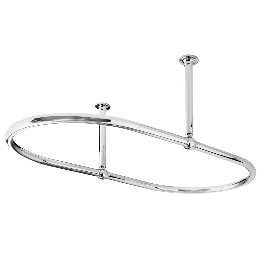 A elegant traditional chrome plated solid brass oval tubular shower curtain rail with middle ceiling mounts from period bathroom specialists Old London. Features heavy cast-brass ball joints and flange wall mounts. Add the finishing touch to your traditional bathroom with the high-quality Old London oval shower curtain rail. Designed to compliment Old London’s range of traditional showers and baths. Please note the ceiling legs are not adjustable and supplied at a fixed length.