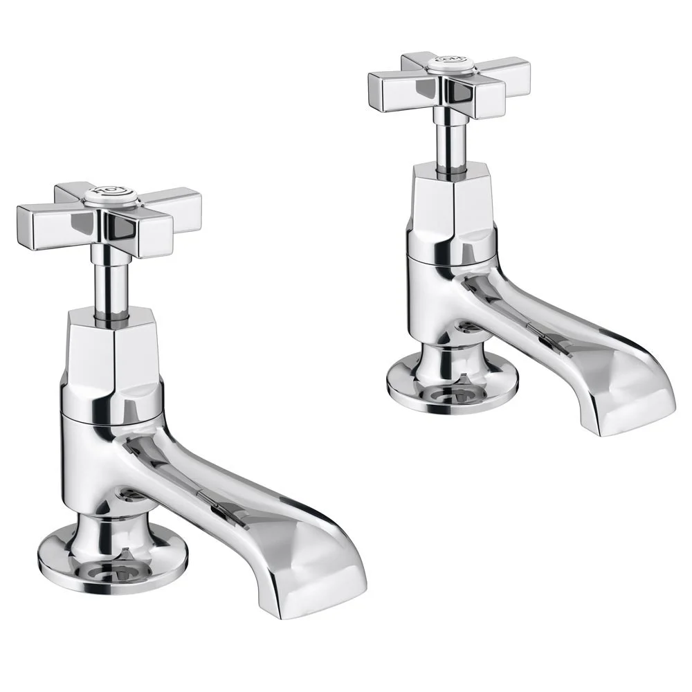 A pair of Art Deco style basin taps inspired by classic 1920’s/30’s designs, manufactured from quality brass with a chrome plated finish. A perfect mix of traditional design with contemporary build meaning that it not only adds at touch of class to your bathroom but will also last the test of time with a 5 year guarantee.