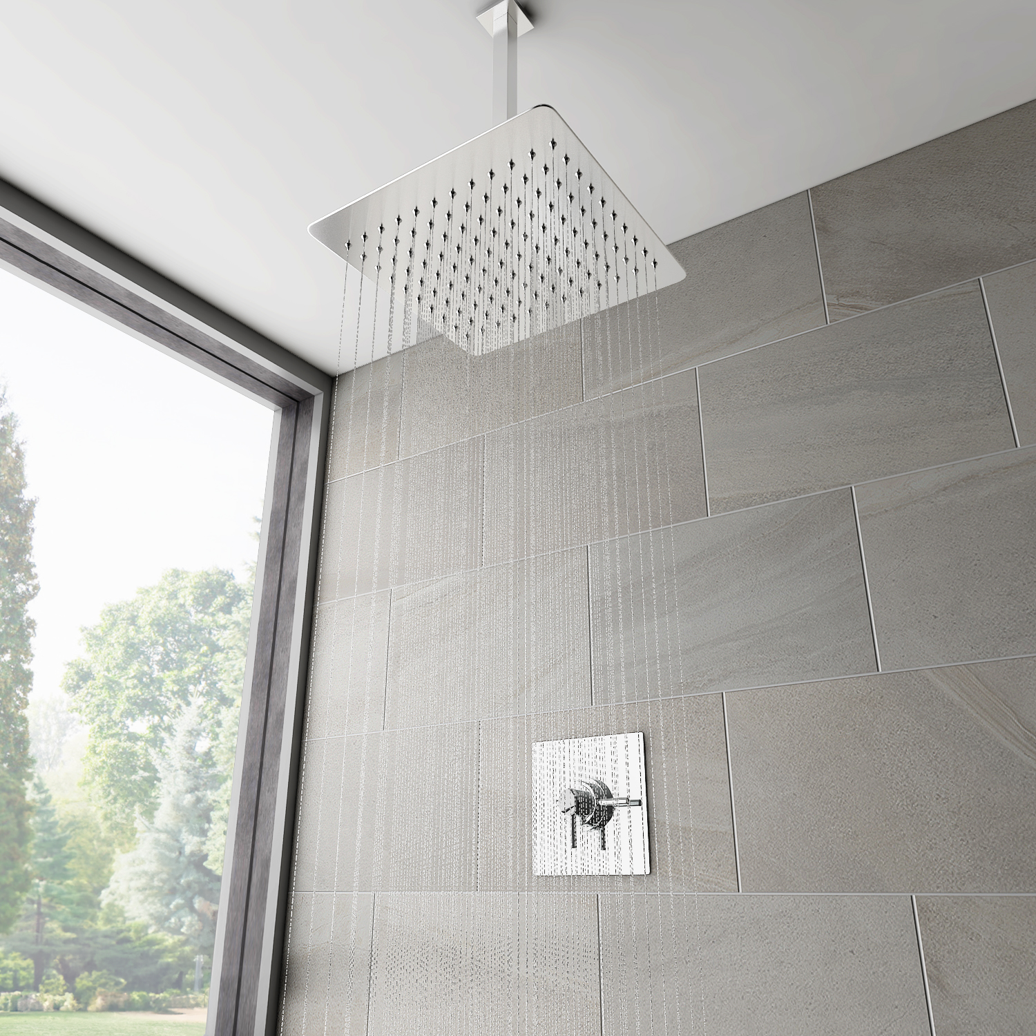 The minimalist Orion concealed thermostatic shower valve with a square back plate offers thermostatic showering, controlled by two easy-to-operate handles. One handle controls the flow, while the other allows temperature adjustment. This valve can be used with either a fixed shower head or a slide rail kit. Additionally, it includes a built-in anti-scald device for added safety in case of cold water supply failure. The Orion Dual concealed thermostatic shower valve adds sophistication and style to any bathroom.
