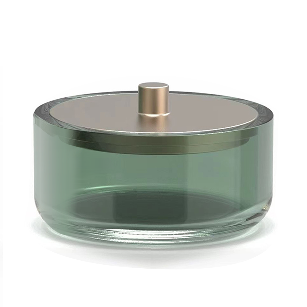 The Roxbury Art Deco Fluted Trinket Box is a beautiful decorative piece that embodies the glamour and sophistication of the Art Deco period. The body of the box is round in shape, made in a green color that creates a captivating visual appeal. The trinket box is topped with a brushed gold lid that contrasts exquisitely with the green body, providing an elegant touch.
