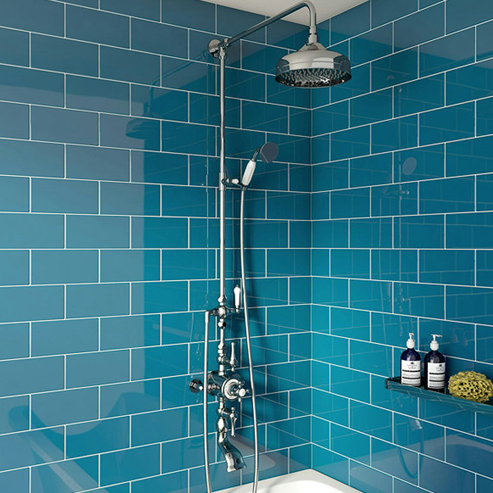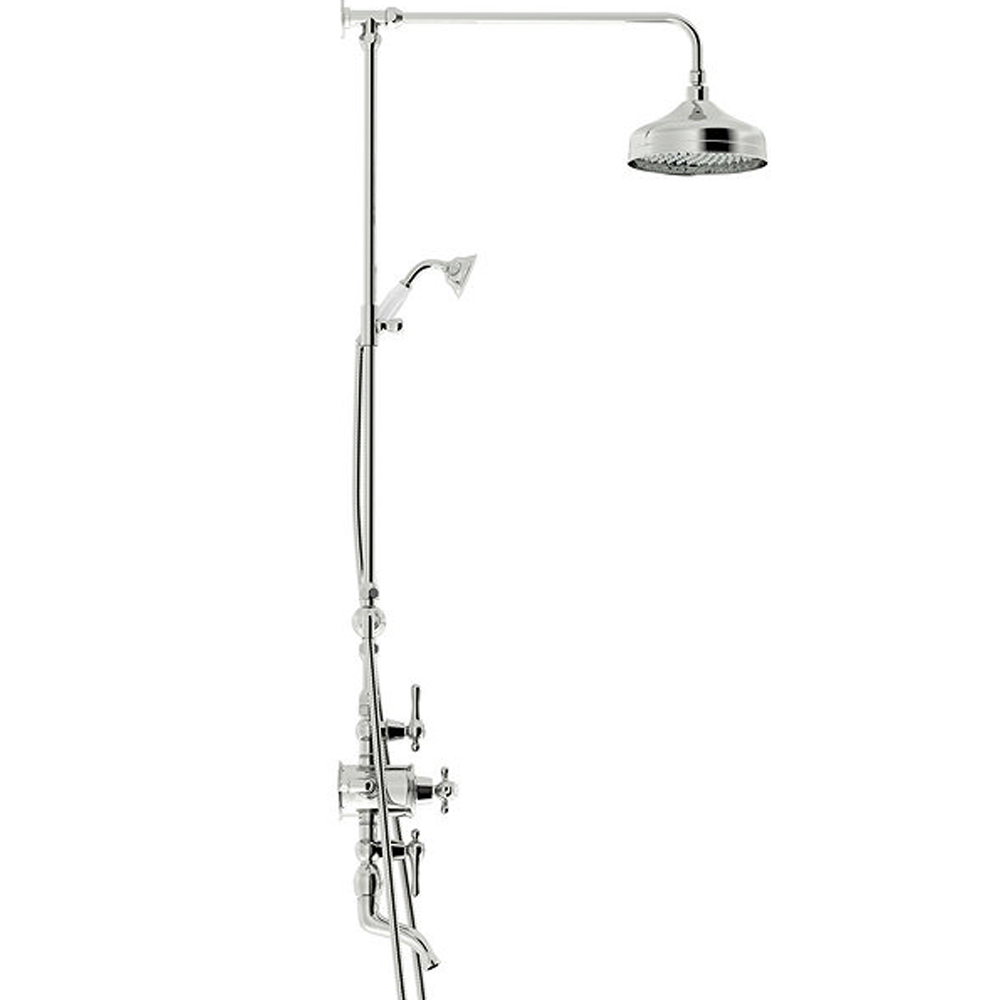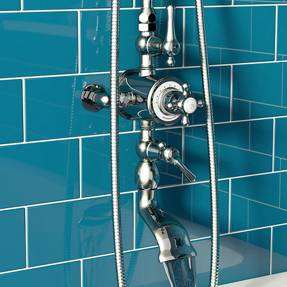 The 3-in-1 Thermostatic Shower Set is an ideal choice for traditional style bathrooms, featuring a thermostatic shower valve with lever and cross head handles that pair perfectly with Camberley taps. Made from solid brass with a hand-polished chrome finish, this luxury shower set operates three outlets, allowing two to be used simultaneously.