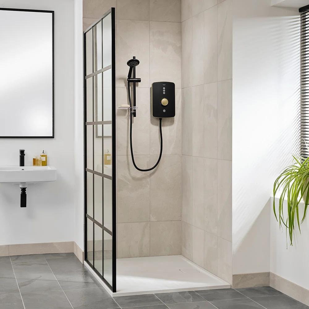 Whether you’re out to add a cool feature to your bathroom or find inspiration for a complete bathroom renovation, Amala puts cutting-edge design at the heart of your bathroom. Easy to use, it’s illuminated soft touch values power you up, power you down, and everything in between. Features modern styling with brushed brass effect trims and temperature dial. Includes 1.5m hose with easy clean five spray pattern shower head and stylish slender riser rail kit for a minimalist appeal.