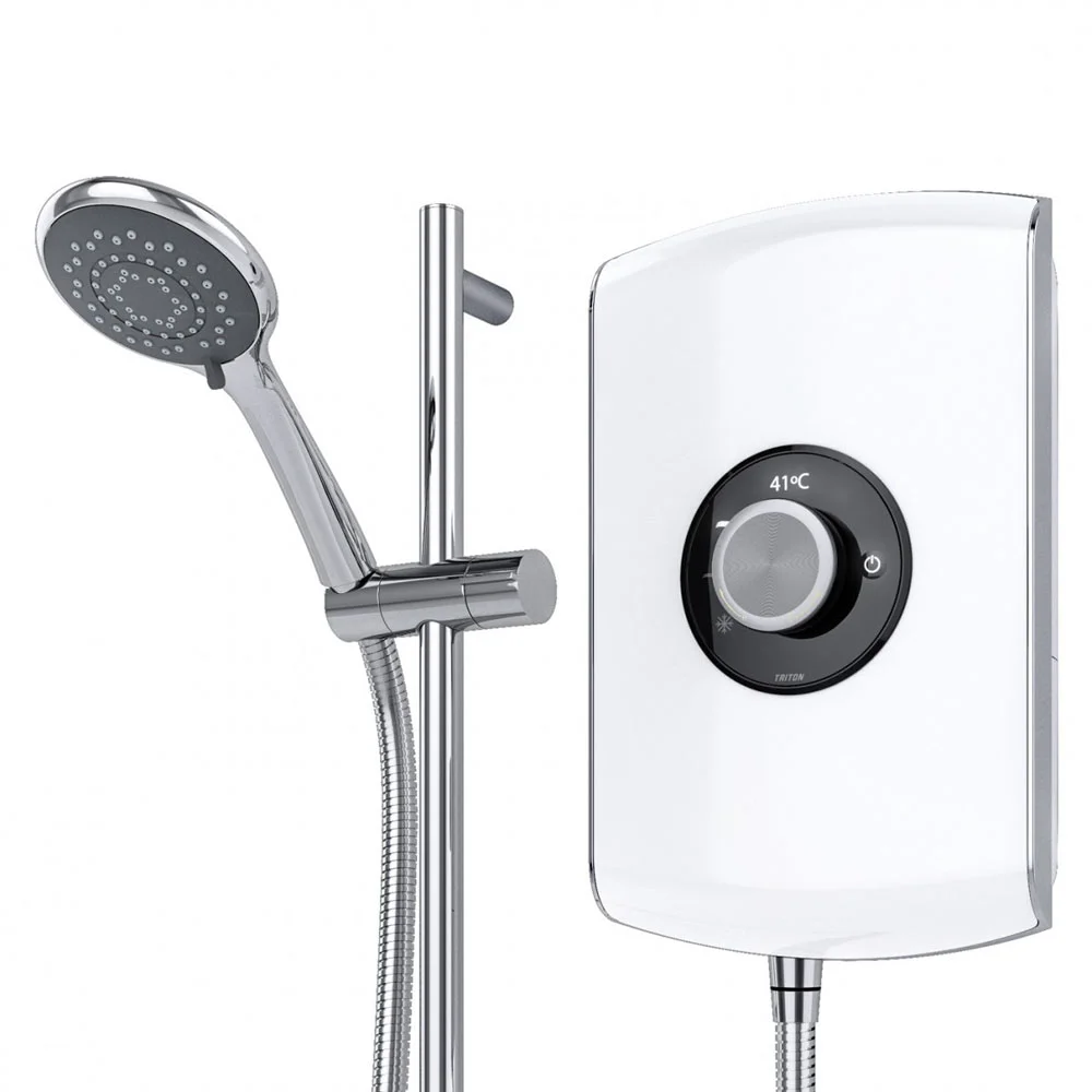 Create a superb focal point for your bathroom with the Amore electric shower. Sleek and elegant, this modern shower features clever, easy to use digital touch controls and comes in a classic gloss white finish. Includes a slender shower kit consisting of a 5 spray rub clean chrome finish shower head, 1.5m anti-twist hose and 22mm rail.