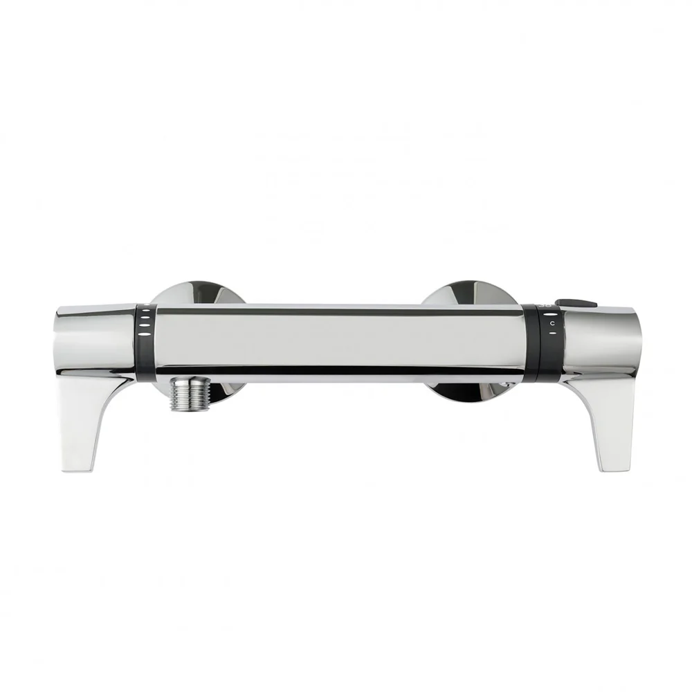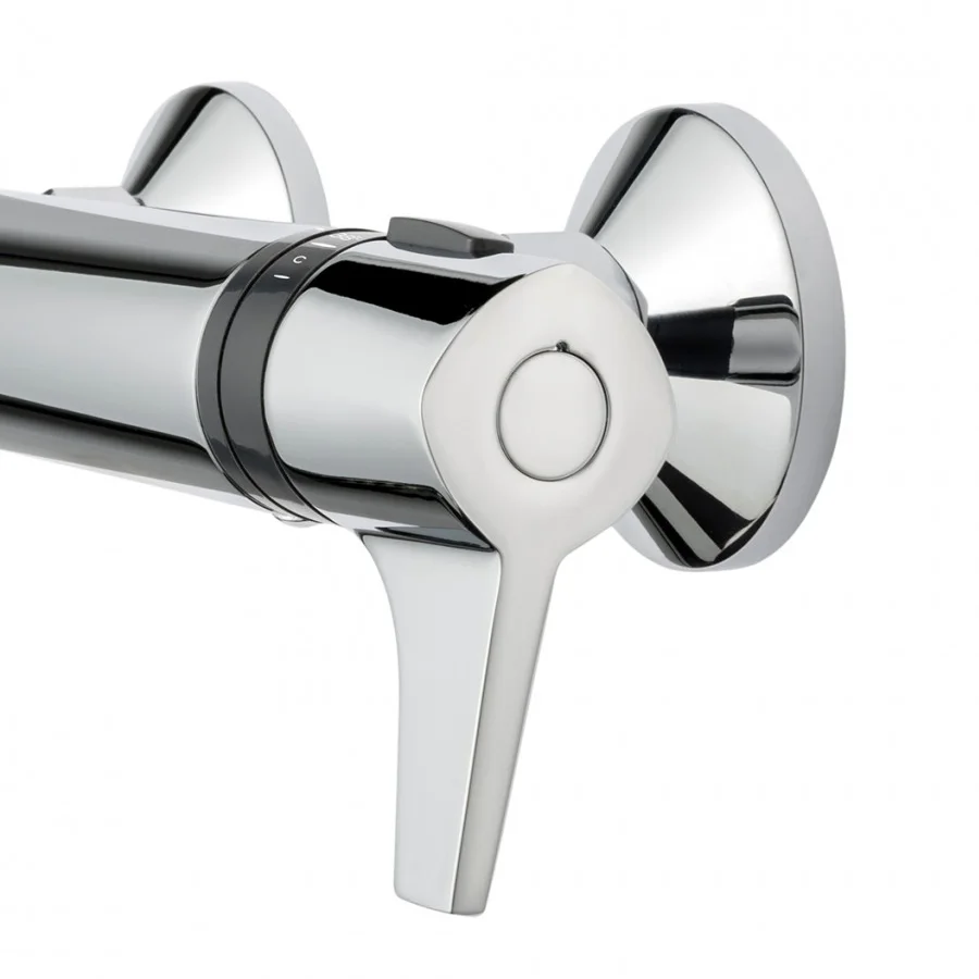 Suitable for all water systems, the Exe Lever bar shower mixer is a classic design and good value for money. Easy to install, the mixer features quarter turn lever controls and comes paired with a slider rail and 3 spray pattern, rub clean nozzles shower head. Its thermostatic feature gives a constant regulated temperature giving you more precise control and safer showering, whilst its safety features boast an automatic shutdown function should any of the water supplies fail and an adjustable maximum temperature stop which reduces the risk of accidentally turning the temperature too high.